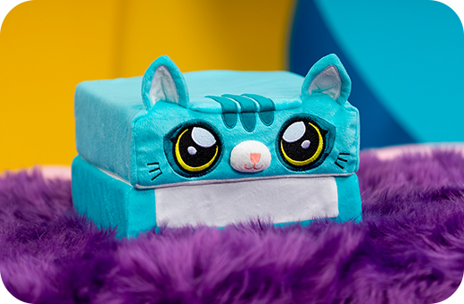 Pillow Cube Kids are huggable, squeezable toys that spark imagination and fun, then unfold into a full-sized pillow for naptime or bedtime. With the perfect softness for head support, they help kids sleep soundly without tossing or turning.